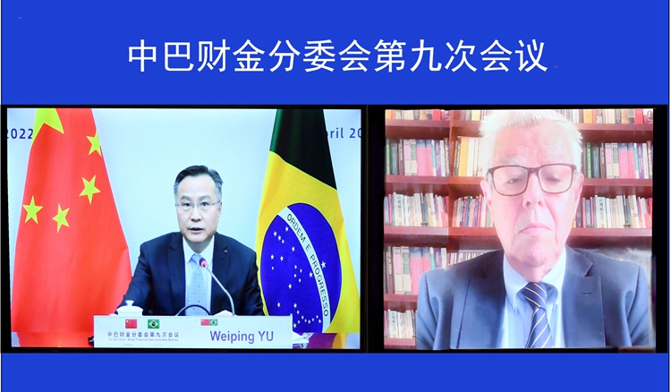 2022年4月28日,財(cái)政部副部長(zhǎng)余蔚平與巴西經(jīng)濟(jì)部副部長(zhǎng)羅伯特·芬特以視頻方式共同主持中巴財(cái)金分委會(huì)第九次會(huì)議。