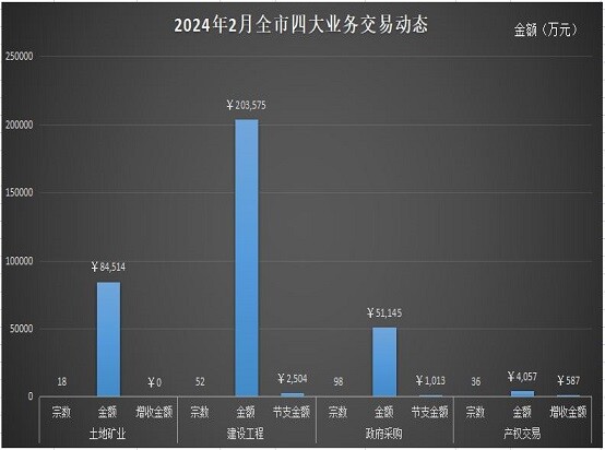 全市(含縣區(qū))2月,全市公共資源交易完成204宗,成交金額34.33億元,增收金額586.74萬(wàn)元,節(jié)支金額3517.04萬(wàn)元,增收節(jié)支金額合計(jì)4103.78萬(wàn)元,其中:土地與礦業(yè)一級(jí)市場(chǎng)成交18宗,成交金額8.45億元,無(wú)增收金額;建設(shè)工程交易項(xiàng)目成交52宗,成交金額20.36億元,節(jié)支金額2503.70萬(wàn)元;政府采購(gòu)成交98宗,成交金額5.11億元,節(jié)支金額1013.34萬(wàn)元;產(chǎn)權(quán)交易成交36宗,成交金額4056.73萬(wàn)元,增收金額586.74萬(wàn)元。