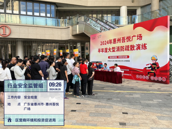 根據(jù)“安全生產(chǎn)月”活動(dòng)安排及要求,為提高企業(yè)從業(yè)人員應(yīng)急處置能力,2024年6月28日上午,我局聯(lián)合區(qū)消防大隊(duì)、吾悅廣場,在吾悅廣場1號門開展惠州吾悅廣場半年度消防疏散演練,組織商場管理人員及商戶約100人參加演練活動(dòng),切實(shí)提高從業(yè)人員安全意識、應(yīng)急處置能力。