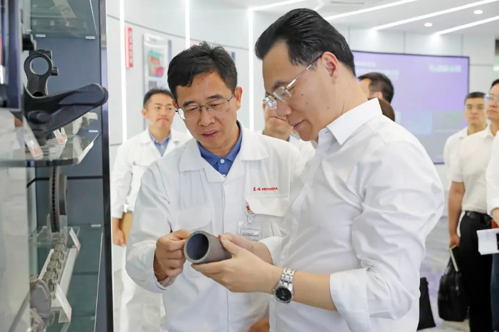 在東風本田汽車零部件有限公司,郭武飄參觀了公司展廳并與公司高層進行座談交流,了解企業(yè)發(fā)展歷程、企業(yè)文化、產(chǎn)品研發(fā)、投資規(guī)劃及員工工作生活等情況。他表示,大亞灣正大力聚集各類創(chuàng)新要素,努力讓創(chuàng)新成為大亞灣的符號和名片,他鼓勵企業(yè)加強創(chuàng)新技術(shù)研發(fā)能力,期待企業(yè)在大亞灣擴大產(chǎn)能和創(chuàng)造更豐富的產(chǎn)品。要求相關(guān)部門重視企業(yè)的具體訴求,抓好政策兌現(xiàn)落地,不斷提升服務(wù)效能,為企業(yè)發(fā)展保駕護航。公司總經(jīng)理井口公玄對郭武飄一行到訪表示歡迎,對大亞灣區(qū)各級各部門一直以來的關(guān)心和支持表示感謝。他表示,公司扎根大亞灣三十年來,得到政府的大力扶持,發(fā)展進程順利。接下來,公司將通過擴大產(chǎn)能、加大科技研發(fā)投入,爭取更大的市場份額,并通過盤活土地資源,加大投資力度,推動節(jié)能減排等工作,不斷拓展與大亞灣合作的廣度與深度,進一步服務(wù)地方發(fā)展。
