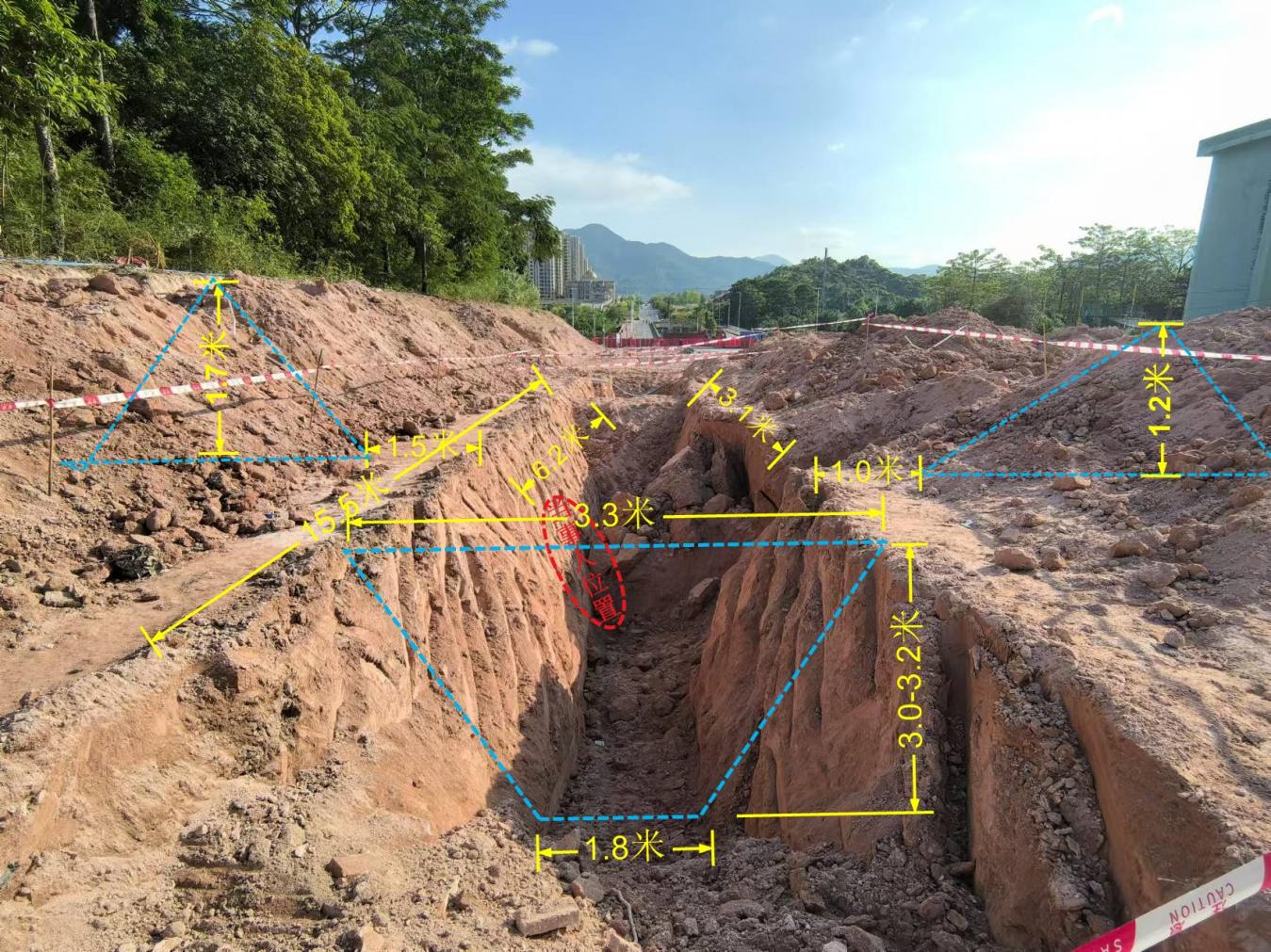 2.宏海建設(shè)公司作為項(xiàng)目勞務(wù)分包單位,未按專項(xiàng)施工方案進(jìn)行施工,對現(xiàn)場作業(yè)人員管理督促不到位。經(jīng)現(xiàn)場勘察,事發(fā)管溝現(xiàn)場實(shí)際開挖坡率為1:0.23,施工方案要求1放坡按1:0.5據(jù)實(shí)調(diào)整,實(shí)際放坡比例不足;管溝頂部違規(guī)2堆放大量土方,坡頂靜載影響管溝側(cè)壁穩(wěn)定性。以上情況,均易導(dǎo)致側(cè)壁土方坍塌。