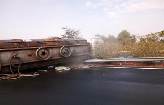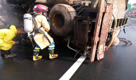 2019年12月30日09點(diǎn)57分,惠州隊(duì)接到報(bào)警調(diào)度。位于廣東省惠州市惠陽區(qū)潮莞高速公路良井服務(wù)區(qū)附近,一輛載約11噸硝酸的槽罐車突發(fā)事故側(cè)翻在高速路上?,F(xiàn)場位處高速路上,嚴(yán)重危害周邊環(huán)境和人員安全。
