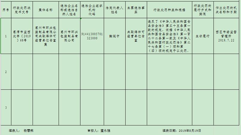 行政處罰決定書(惠州市環(huán)興包裝制品有限公司 )