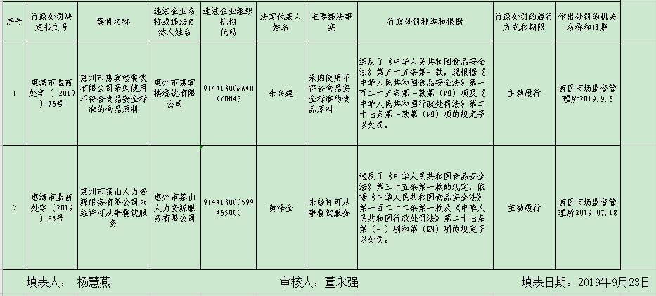 65惠州市茶山人力資源服務有限公司 11行政處罰決定書 - 副本 76行政處罰決定書-惠州市惠賓樓餐飲有限公司