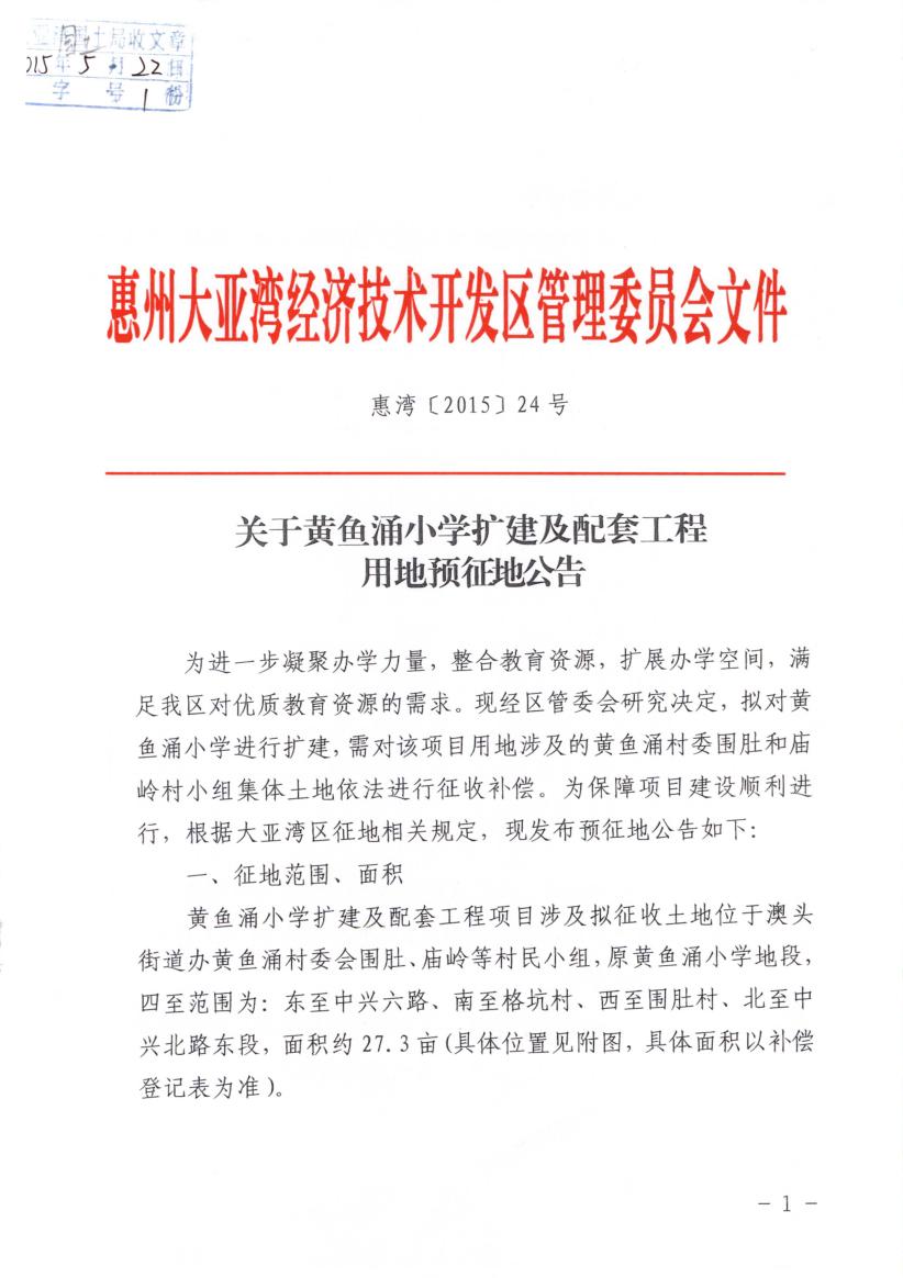 關于黃魚涌小學擴建及配套工程用地預征地公告.pdf