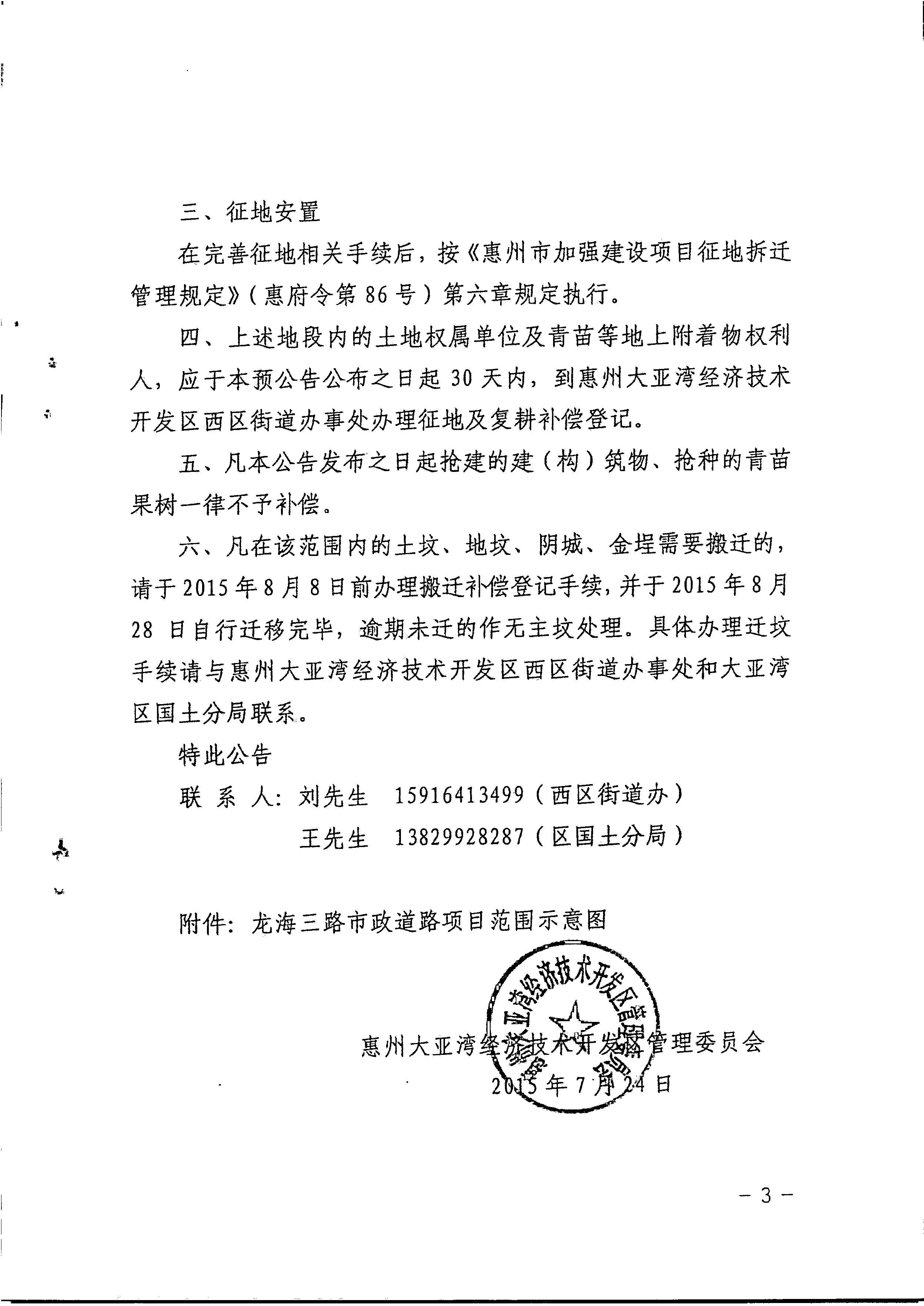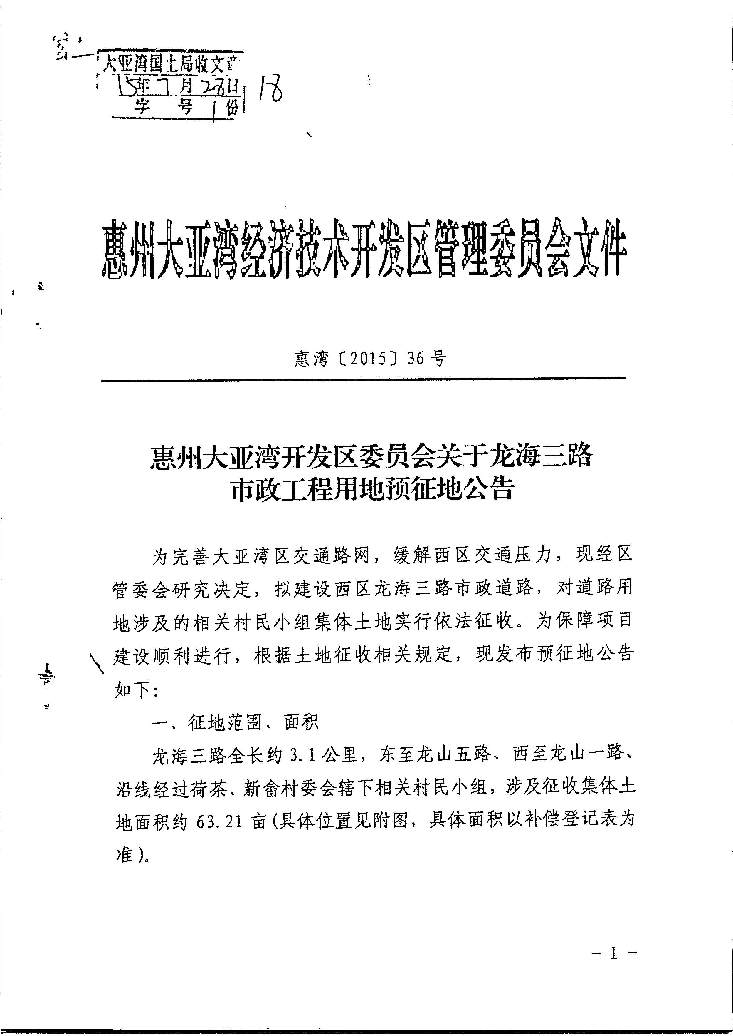 惠州大亞灣開發(fā)區(qū)管委會(huì)關(guān)于龍海三路市政工程用地預(yù)征地公告.pdf