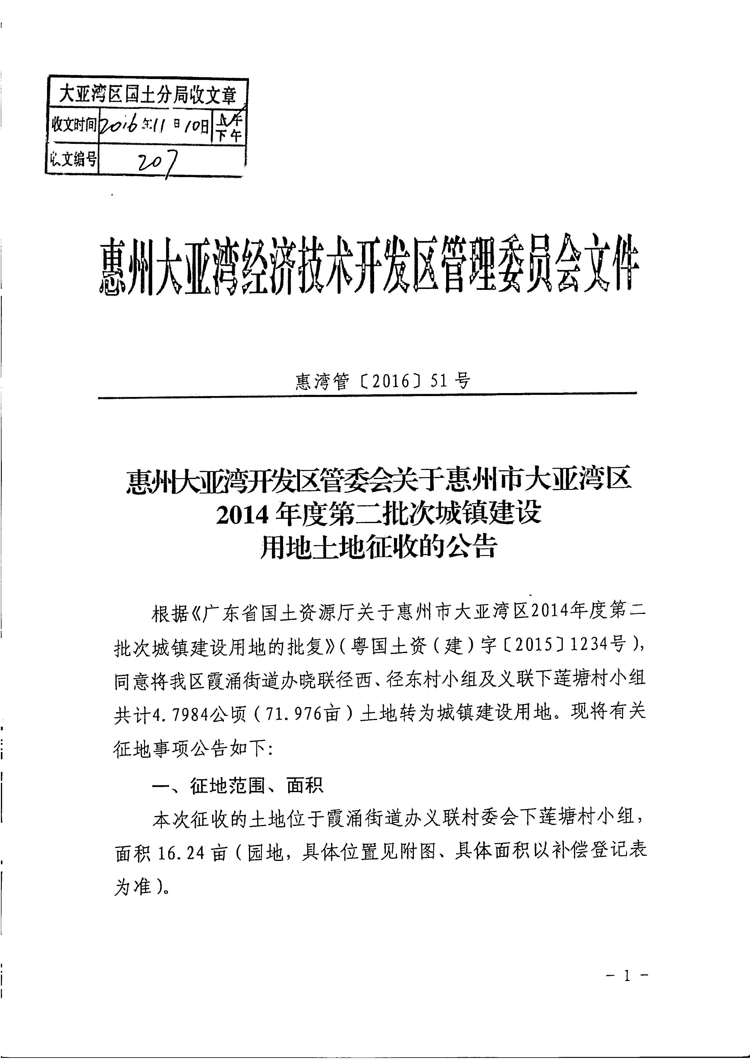 惠州大亞灣開發(fā)區(qū)管委會(huì)關(guān)于惠州市大亞灣區(qū)2014年度第二批次城鎮(zhèn)建設(shè)用地土地征收的公告.PDF