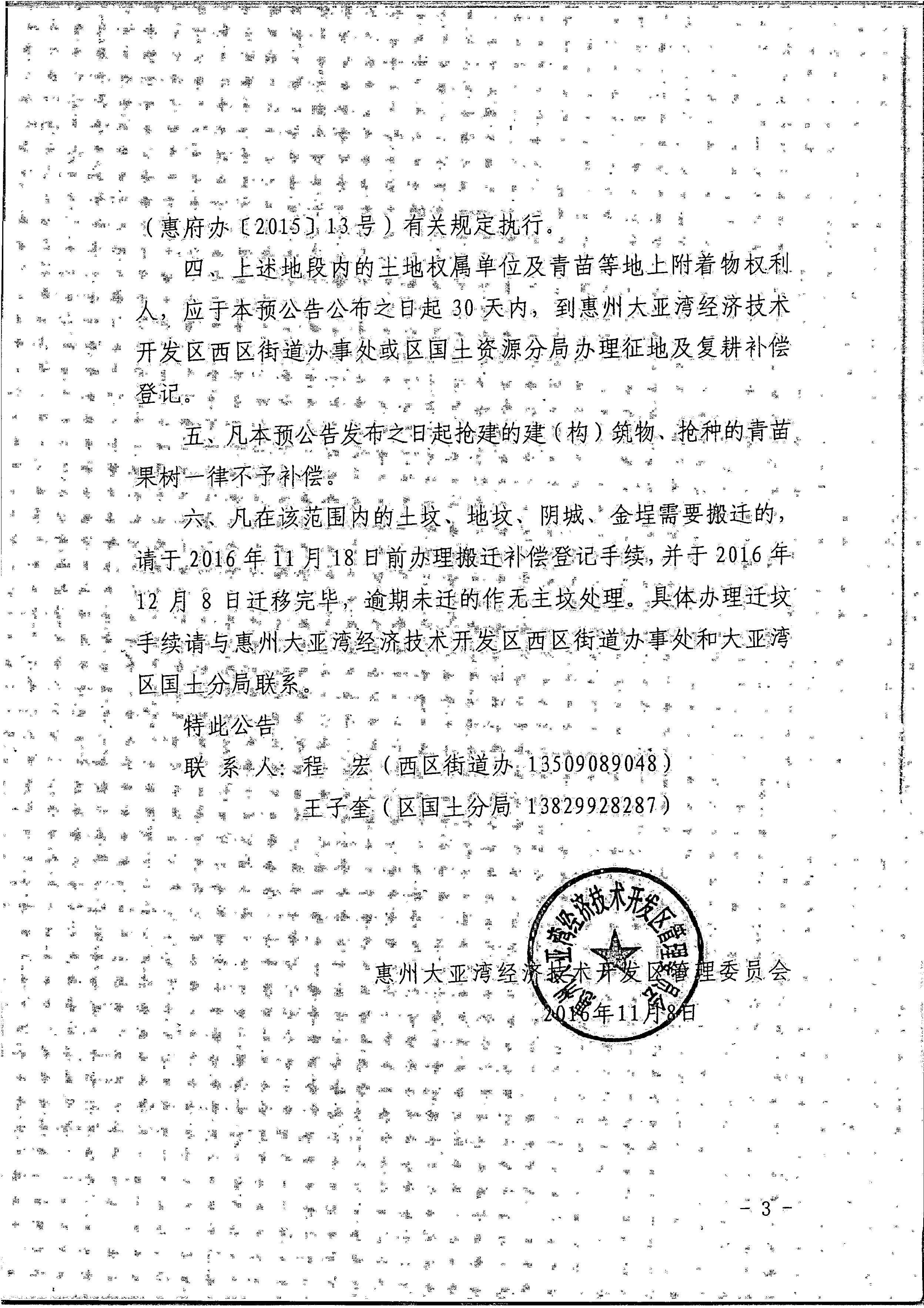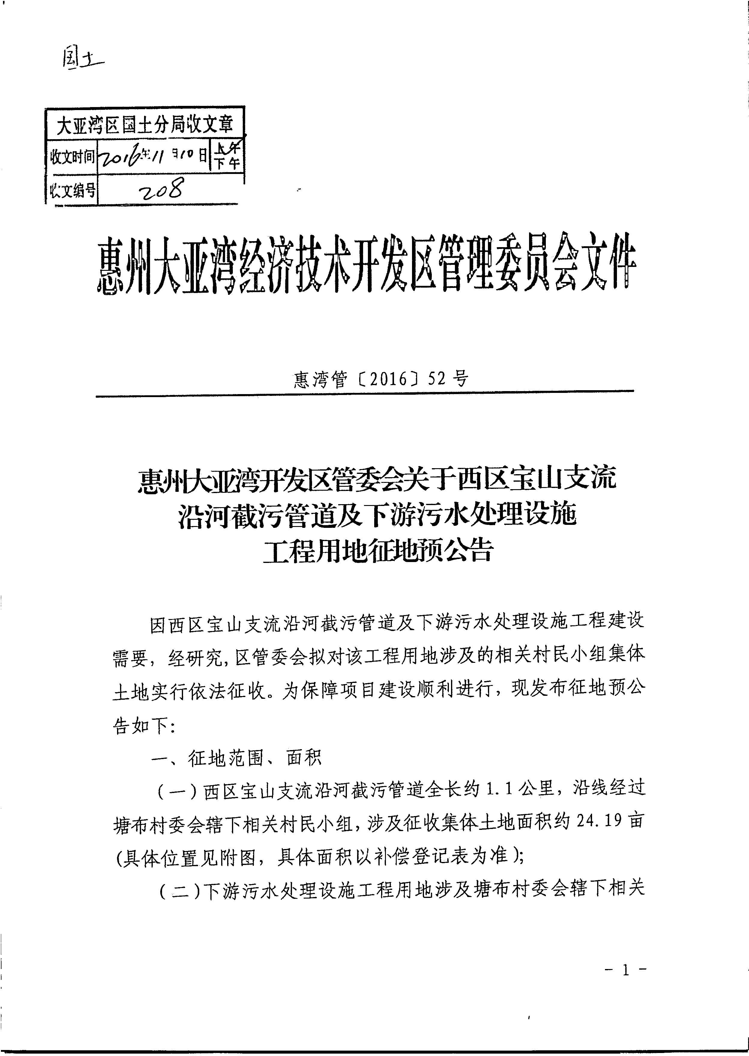 惠州大亞灣開發(fā)區(qū)管委會關(guān)于西區(qū)寶山支流沿河截污管道及下游污水處理設(shè)施工程用地征地預(yù)公告.PDF