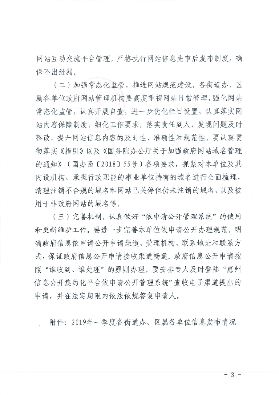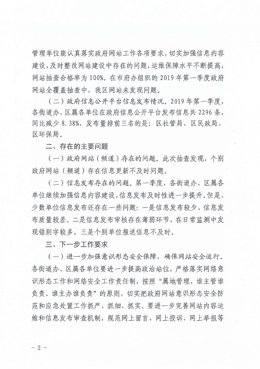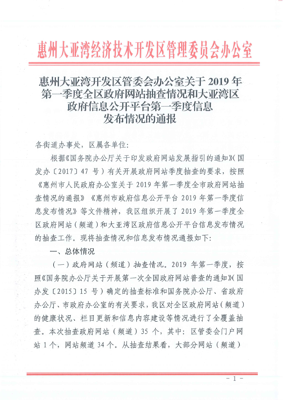 惠州大亞灣開發(fā)區(qū)管委會辦公室關于2019年第一季度全區(qū)政府網(wǎng)站抽查情況和大亞灣區(qū)政府信息公開平臺第一季度信息發(fā)布情況的通報.pdf