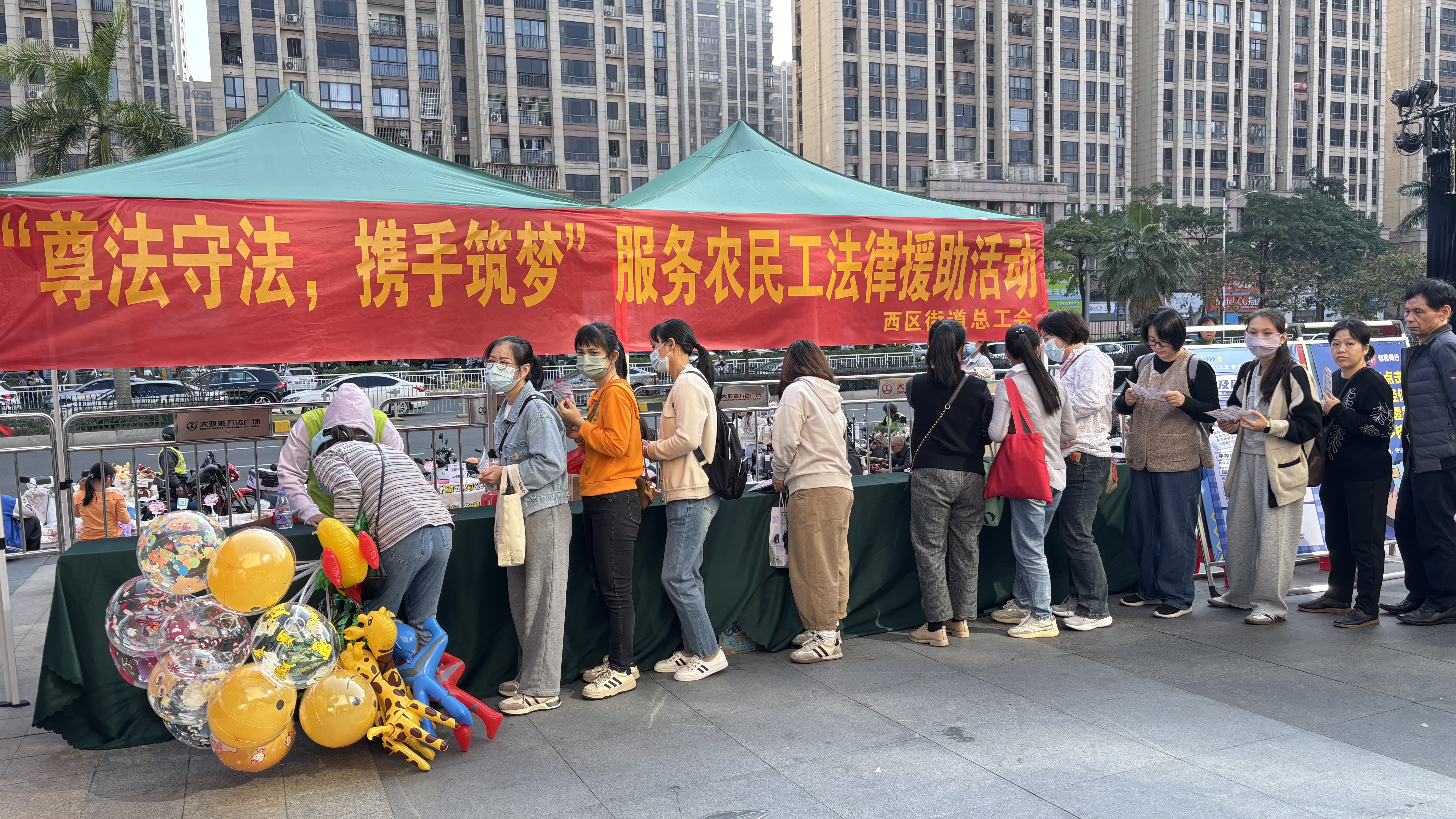 為深入學(xué)習(xí)宣傳、貫徹黨的二十大精神,充分發(fā)揮工會公益法律服務(wù)職能作用,加大農(nóng)民工維權(quán)服務(wù)力度,促進勞動關(guān)系和諧穩(wěn)定。12月7日西區(qū)街道總工會在大亞灣萬達廣場開展“尊法守法,攜手筑夢”服務(wù)農(nóng)民工法律援助活動。