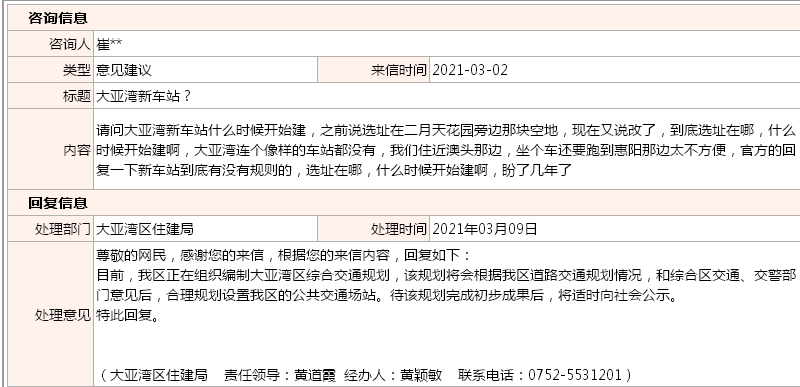 關(guān)于大亞灣新車站的問題