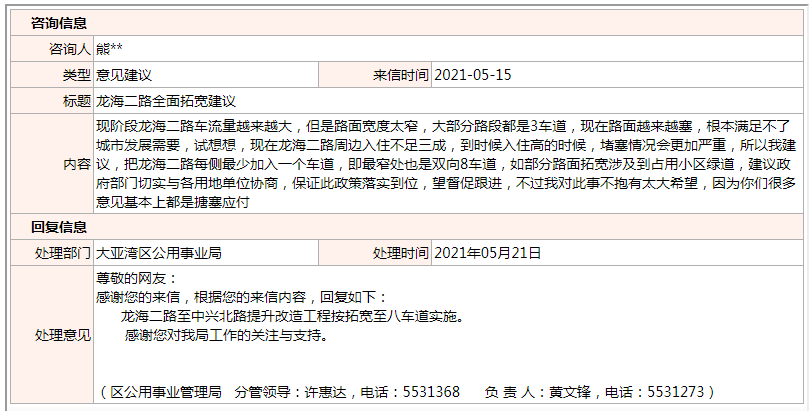 關(guān)于龍海二路全面拓寬的問題