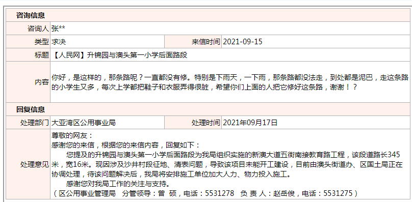 關(guān)于整治升錦園與澳頭第一小學(xué)后面路段的問(wèn)題