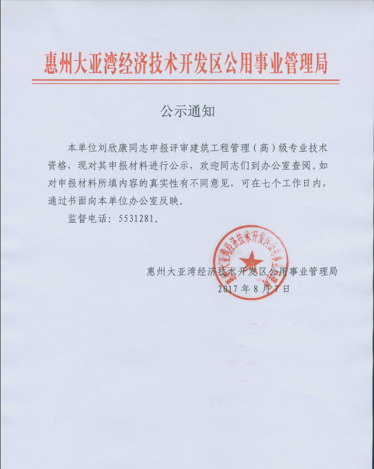 公示通知(劉欣康)